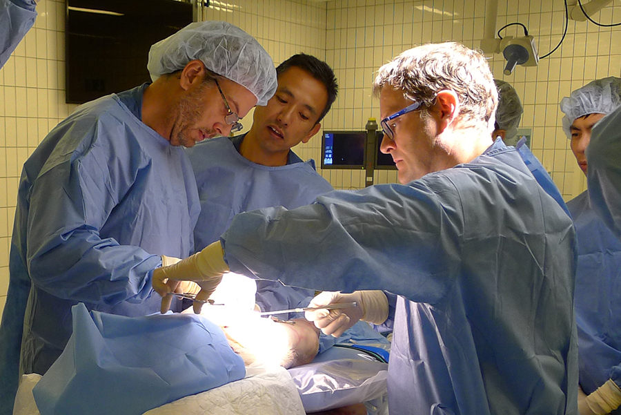 The medical members of the Lower Extremity Expert Group (Christoph Sommer, Rodrigo Pesantez, and Cong-Feng Luo) accompanied the development to refine the implant design. Various Anatomy Labs were performed to optimize the surgical technique (Fig 2).