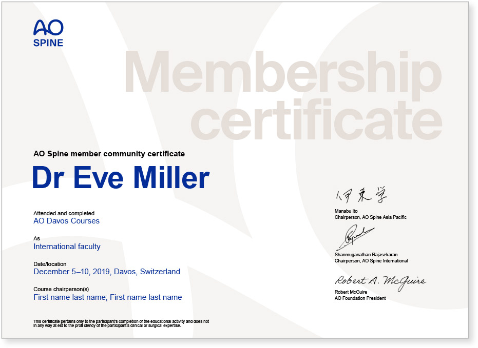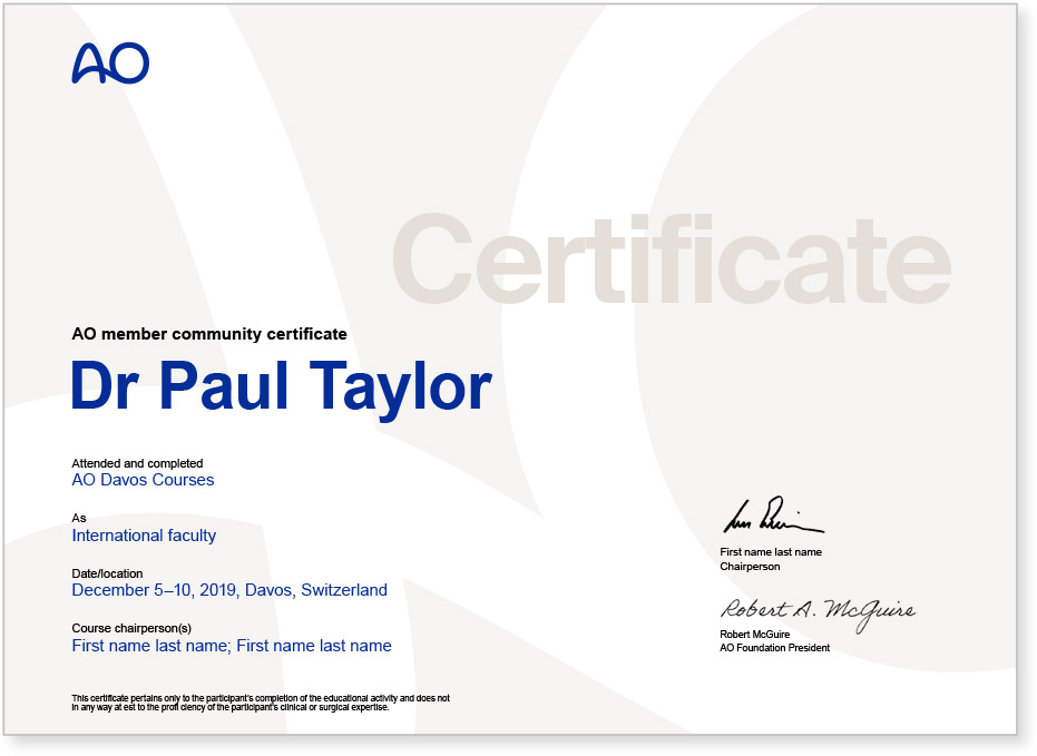 For courses or seminars held directly by AO, the clinical divisions or the institutes, templates are also available (without pre-print).