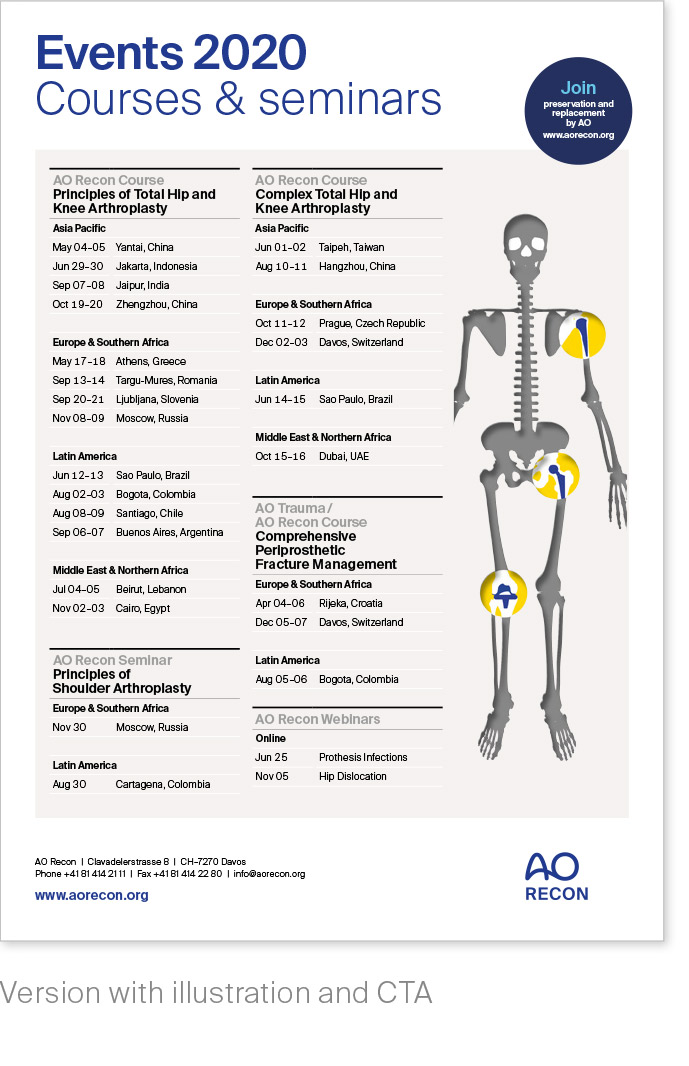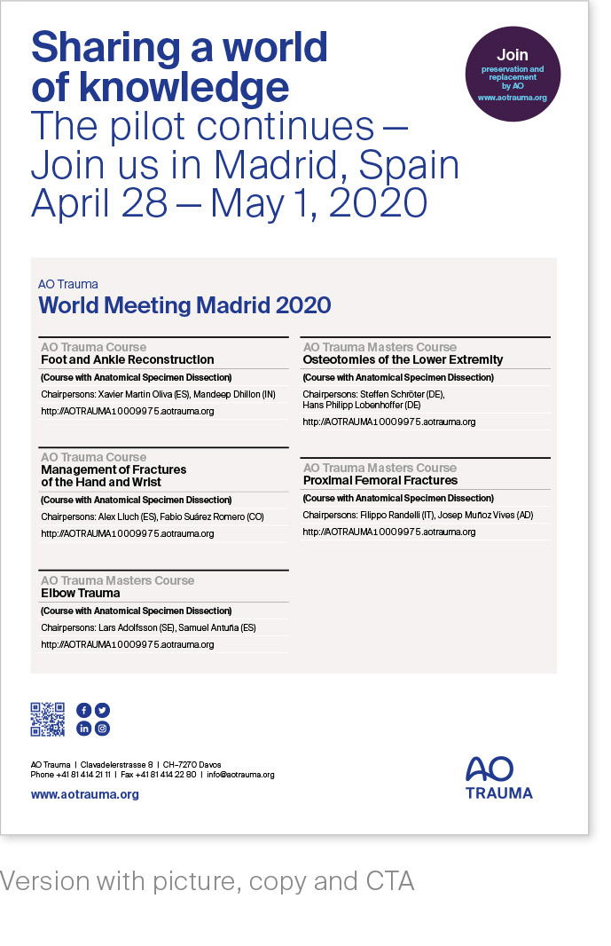 Print ads are used in medical magazines or in course programs to promote a variety of AO benefits, such as a membership or a key service offering.
