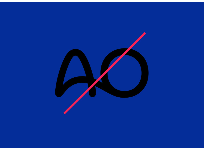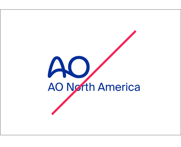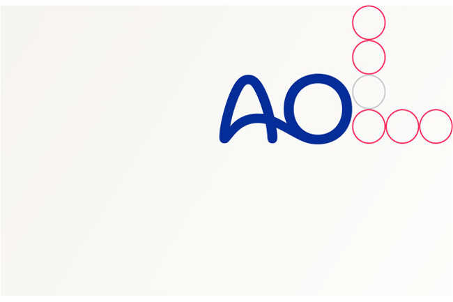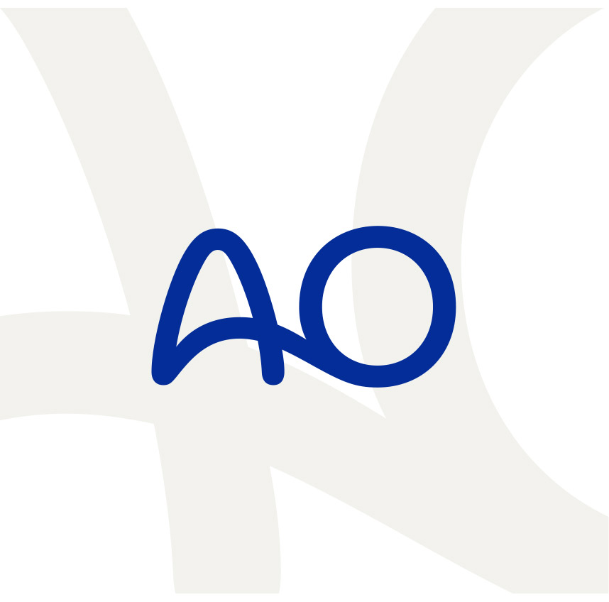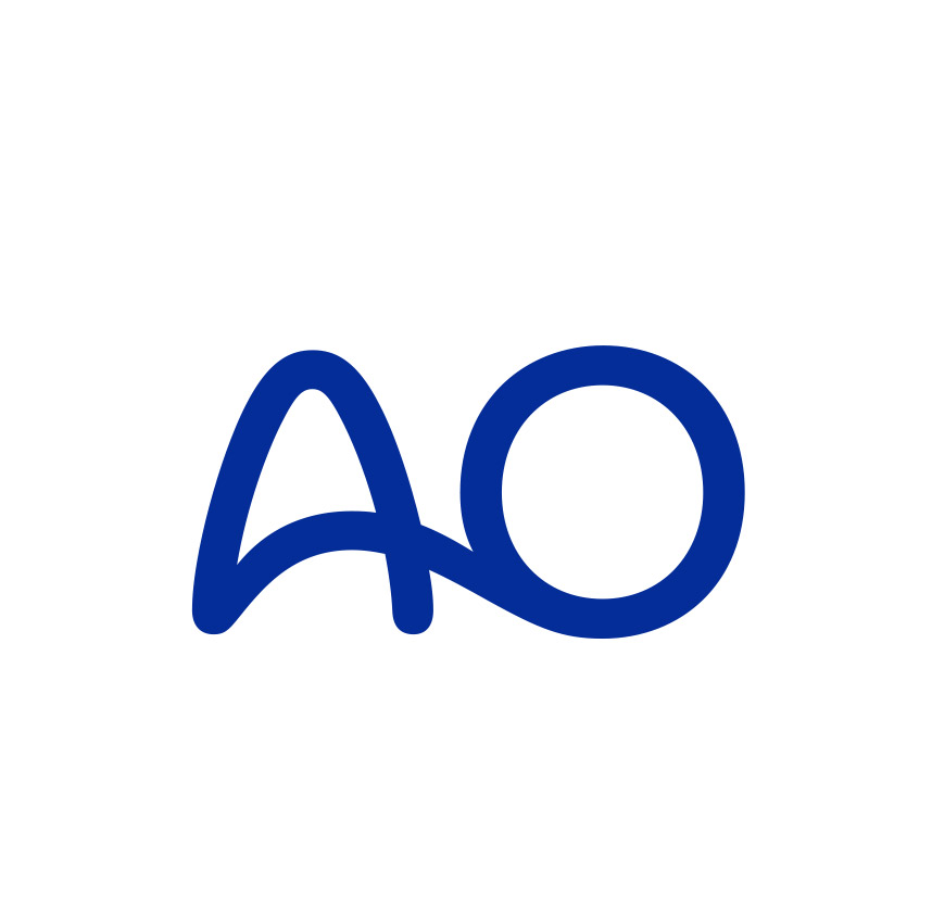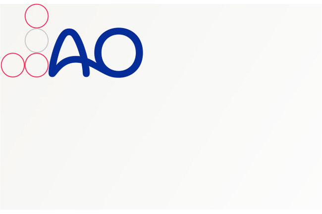 The initialism AO forms the AO master brand and is the main application. Its soft, curved form represents the fact that people are at the heart of the AO, and the connected letters represent the community mindset.