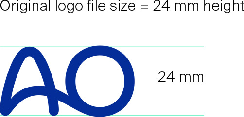 In general, every AO logo should be readable. The height of the master brand in combination with a word mark should be no less than 4 mm. The minimum height of the single master brand is 3 mm