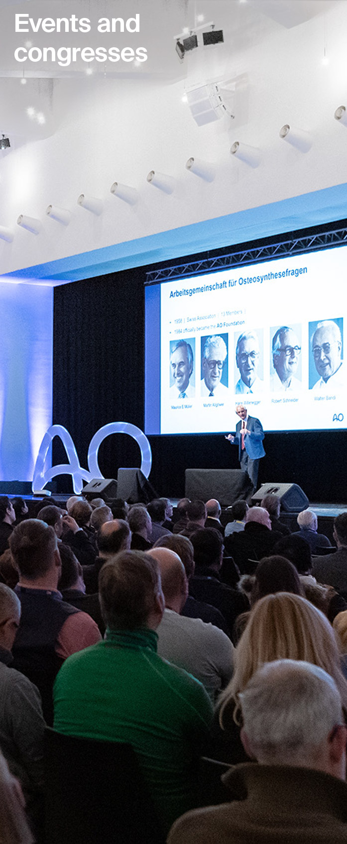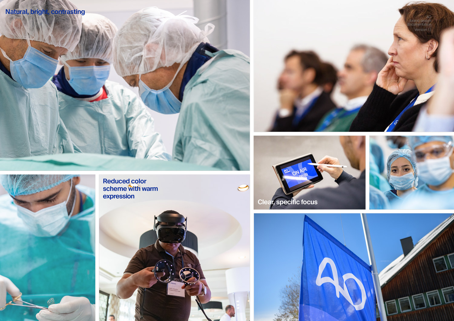 This concept is reflected across all photography categories: The AO Foundation, people at the AO, scenes from events, studio photography, and teaching and practice scenarios.