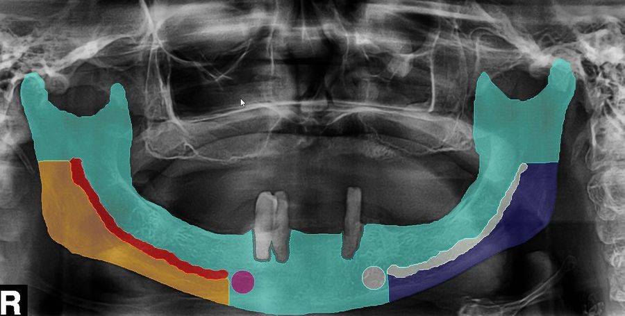 More than 200 patient records and image data (panoramic radiographs, computed tomography and cone beam computed tomography scans) were collected from a retrospective series of patients affected by ARONJ, by oral cancer with jaw bone involvement (reference group 1), as well as patients requiring dental implants (reference group 2). Labeling of the panoramic radiographs, computed tomography as well as cone beam computed tomography was performed. An AI workflow was developed that allowed for the data to be analysed within less than one minute.
