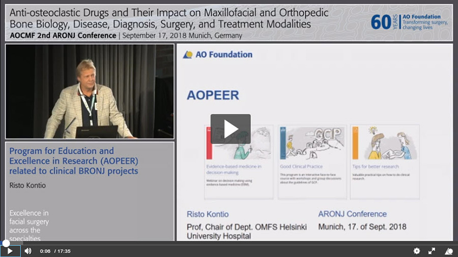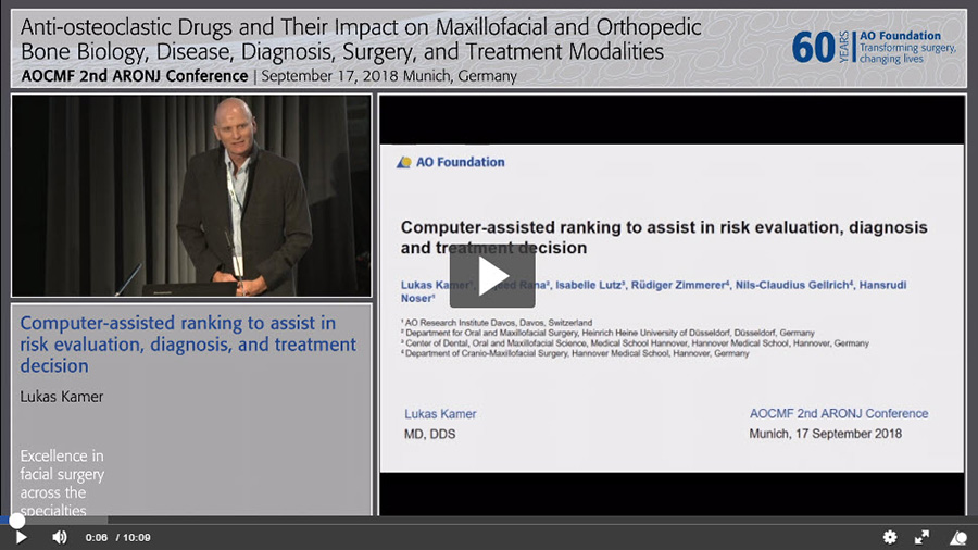 AO CMF-16-16K Project title: Computer-assisted ranking to assist in risk evaluation, diagnosis and treatment decisionAntiresorptive agent-induced osteonecrosis of the jaw refers to necrosis associated with the administration of anti-osteoclastic drugs that are indicated for the treatment of metabolic bone diseases for osteoporosis and cancer. It comprises cases associated with bisphosphonates, and cases associated with the use of other antiresorptive agents. Despite the clinical benefits the agents may lead to osteonecrosis of the jaw, a complication observed in a subset of patients. Even though ARONJ can occur spontaneously it is more often associated with specific medical and dental conditions and procedures that increase the risk of experiencing a bone trauma of within the maxillofacial region.