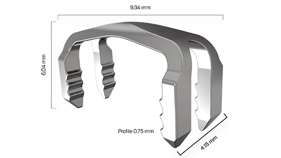 This extramedullary implant for hammertoe fixation is designed with Nitinol to provide continuous compression and superior rotational stability with greater distraction resistance.