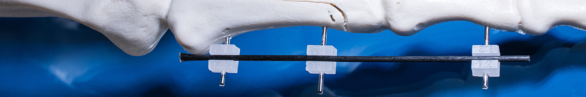 Over the course of his career, one of the setbacks consistently experienced by Bürger was the instability of Kirschner wire (K-wire) fixation for fractures of the phalanx. Titanium plates—another fixation option—present additional challenges: "It's not always possible in an acute trauma situation to open the soft-tissue sufficiently to achieve fixation with a plate” says Bürger. Bone cement is also an alternative, but usage is expensive, time-consuming, and challenging because once it dries the fixation cannot immediately be corrected.