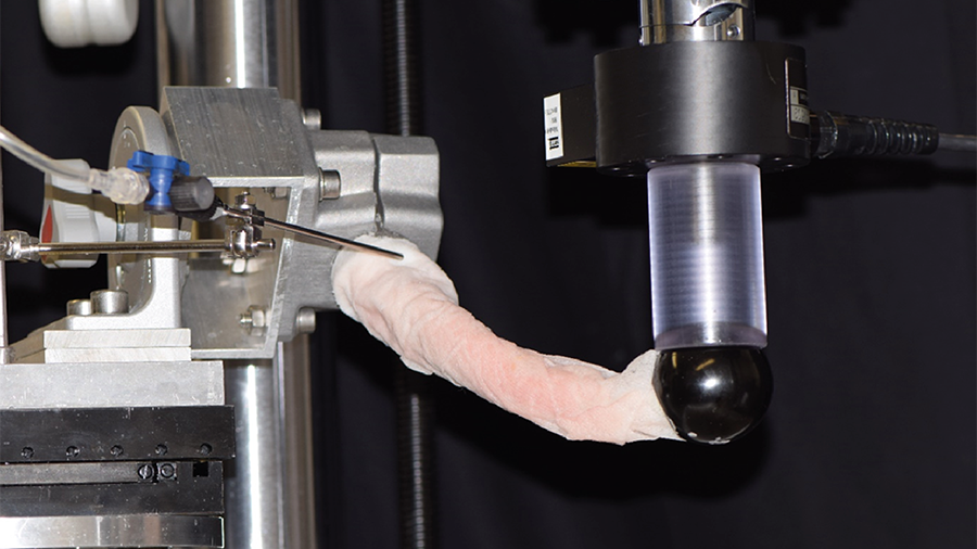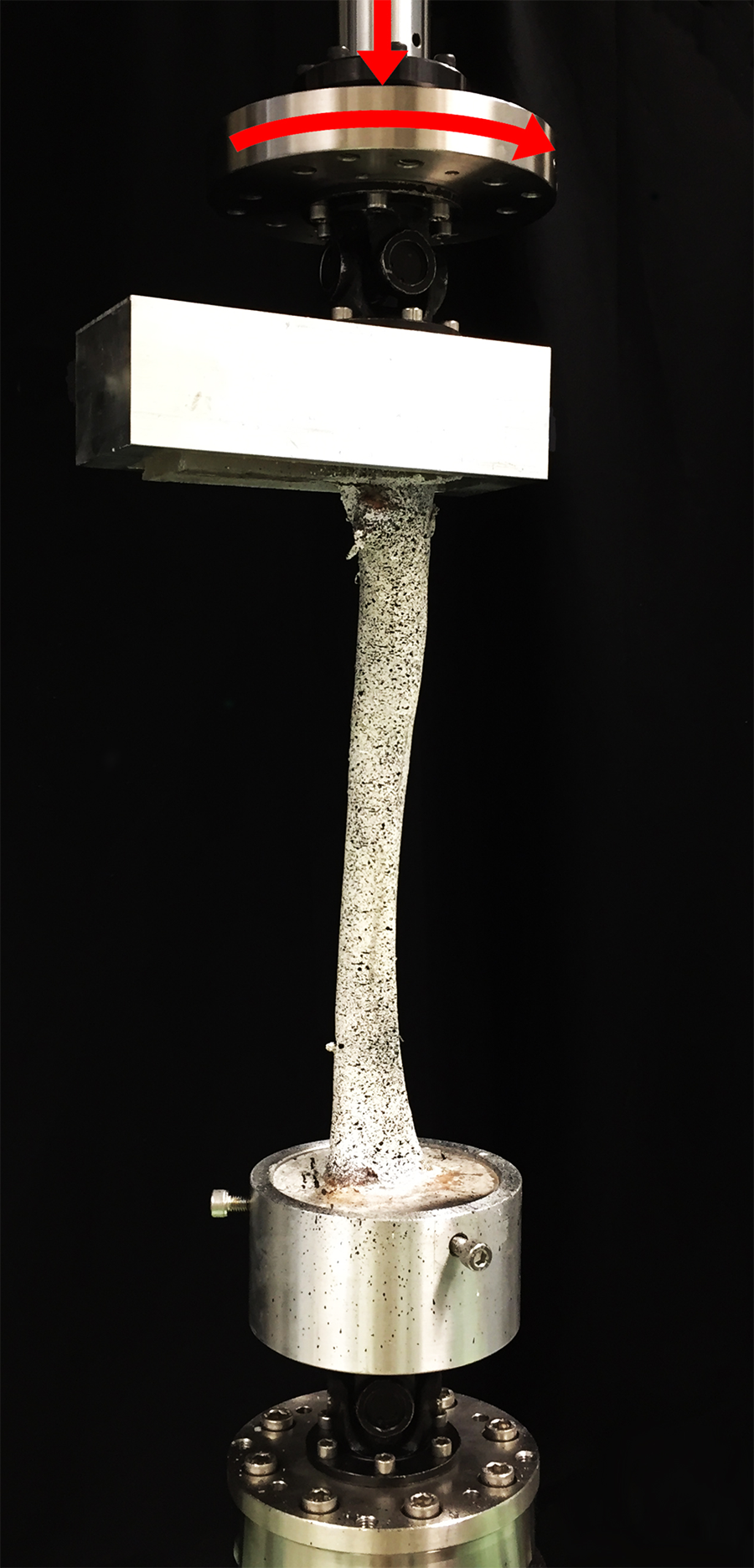 Each specimen was first biomechanically preloaded at 1 Hz over 2000 cycles in superimposed synchronous axial compression to 1800 N and internal rotation to 11.5 Nm (Fig 1). Next, internal rotation to failure was applied over an arc of 90° within 1 second under 700 N axial load. Torsional stiffness as well as torque, angle, and energy at failure were evaluated. Digital image correlation analysis was performed by means of stereographic optical measurements using a contactless full-field deformation technology to calculate the strain at the fracture site. Fracture patterns were analyzed.