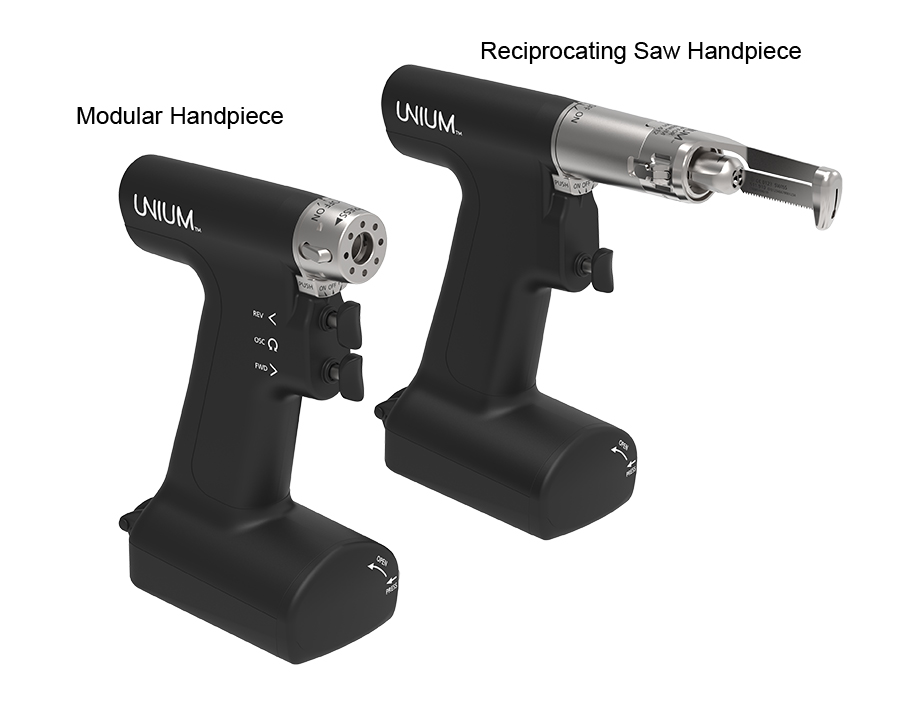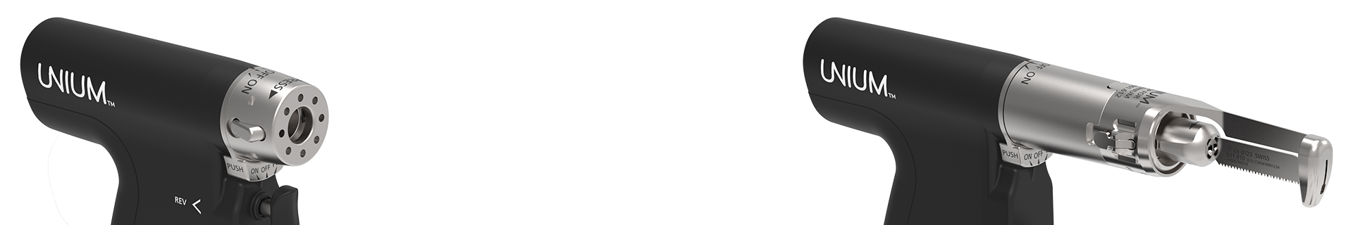 The UNIUM™ Power Tool was designed for increased reliability, efficiency, and comfort of use for an enhanced surgical experience and improved outcomes. It is intended for use in traumatology and orthopedic surgery that may include drilling, reaming, burring, screwing, tapping, sawing, and setting pins and wires.