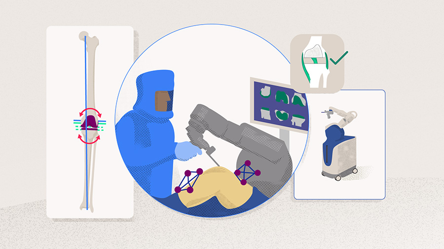 Although the ideal alignment philosophy in the settings of total knee arthroplasty (TKA) is still debatable today, the value of an accurately positioned implant in the clinical outcome of joint reconstruction is undeniable. Thus, it is not surprising that the use of robots in the operating room is rising worldwide [1]. Through the dynamic intraoperative assessment of joint gaps and ligaments, robotic-assisted surgery platforms enable the surgeon to execute accurate bony cuts while preserving the soft-tissue envelope [2, 3]. Despite the high costs associated with robotic-assisted TKA (raTKA) [3], this technique is gaining popularity among the surgeons, especially those aiming to restore the most "normal" knee kinematics in a patient [4]. In this article, Sébastien Lustig, Professor in the Arthritis and Joint Replacement Department of Lyon North University Hospital, reviews the promises and limitations offered by raTKA for functional alignment.