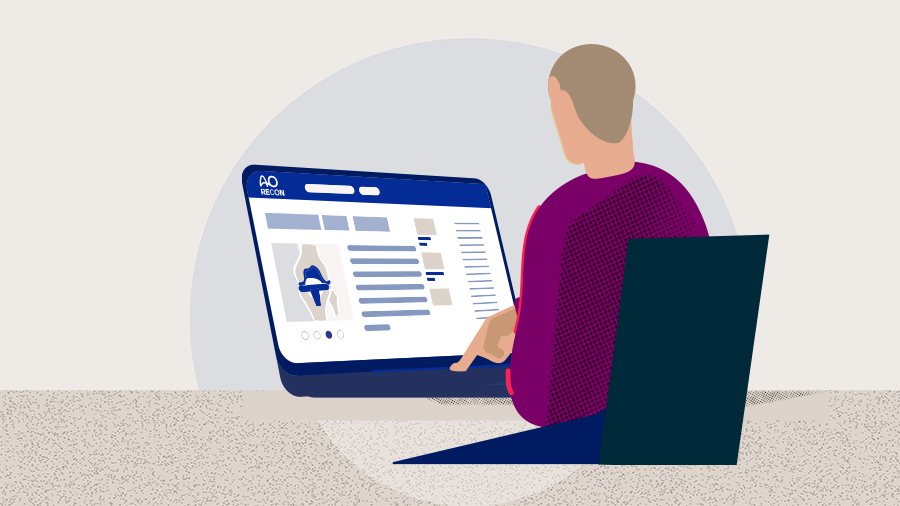 Educational videos, scientific articles and other digital learning resources in Clinical library and tools complement AO Recon's educational portfolio.