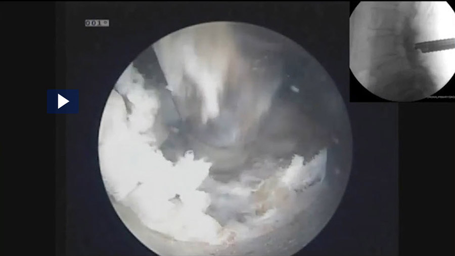 MW (25:50): We’re doing a case of very tight stenosis and we’re drilling and removing bone in the lamina and then later on in the ligament. This is a totally different type of setting. If you’ve never used this technology, the reality is you only really get one working portal. In other words, you don’t get to use two different sets of instruments. At any one time, you only have the one instrument.