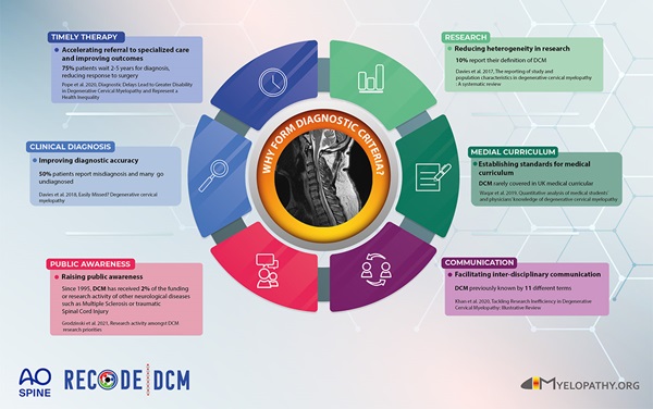 The formation of a specific set of Diagnostic criteria will enable earlier diagnosis but also foster improved diagnosis accuracy, timely therapy, reduce heterogeneity in research, establish standards for medical curriculum, facilitate inter-disciplinary communication and ultimately raise awareness for degenerative cervical myelopathy.