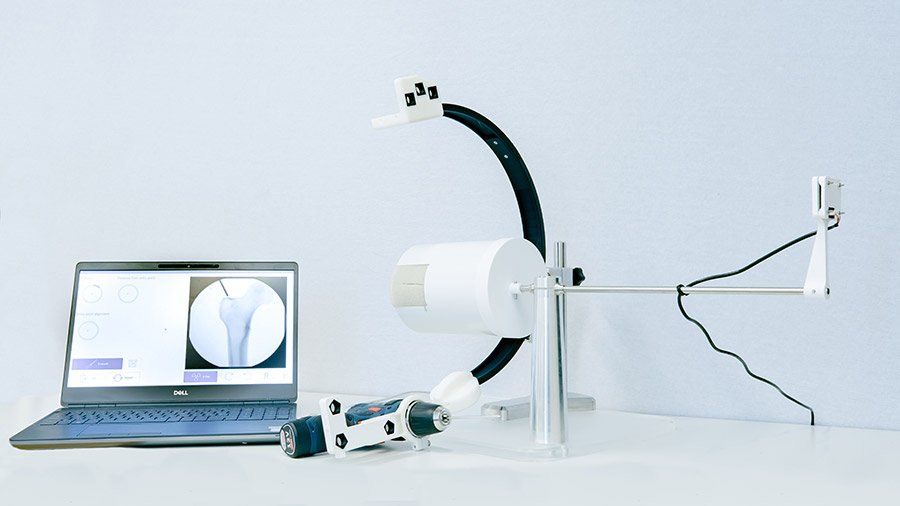 Digitally Enhanced Surgical Trainer (DEHST), our new training platform uses digital technologies to enhance the scope of training. It includes a simplified model of a C-arm [X-ray image intensifier] which generates artificial X-ray images. The DEHST modules incorporate technologies that track the training so that the surgeon receives feedback in form of performance metrics such as accuracy. DEHST allows users to interact with the training station via smartphone app on their personal phones and provides comprehensive training analytics for personalized assessment.