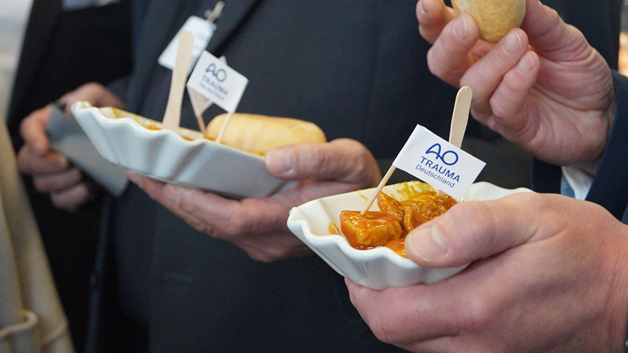 Ein traditionelles Highlight war auch in diesem Jahr der AO Trauma Deutschland Empfang mit beliebter Currywurst. Diese Tradition ist durch das kollegiale Miteinander, eine freundliche Atmosphäre und den fachlichen Austausch für Jedermann eine Bereicherung. Die gute Stimmung ist auf unseren Fotos sehr gut zu erkennen.