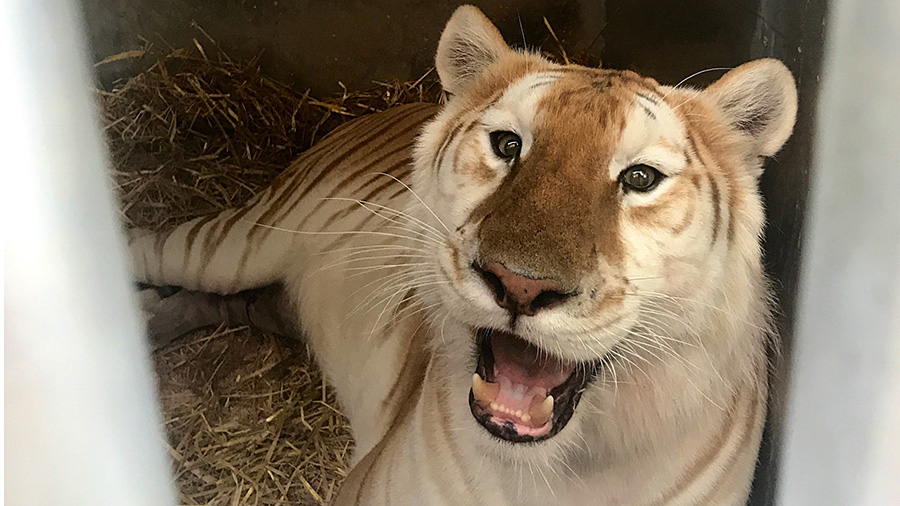 Due to a recessive gene, the golden tabby tiger has a unique, fawn-colored coat, light orange stripes and a pale abdomen and legs—and none of the black coloration of, for example, a Bengal tiger. Golden tabby tigers exist only in captivity, with 30 or fewer remaining in the world today.