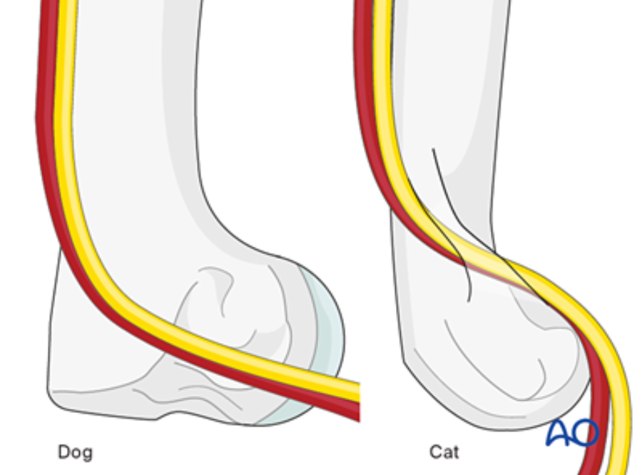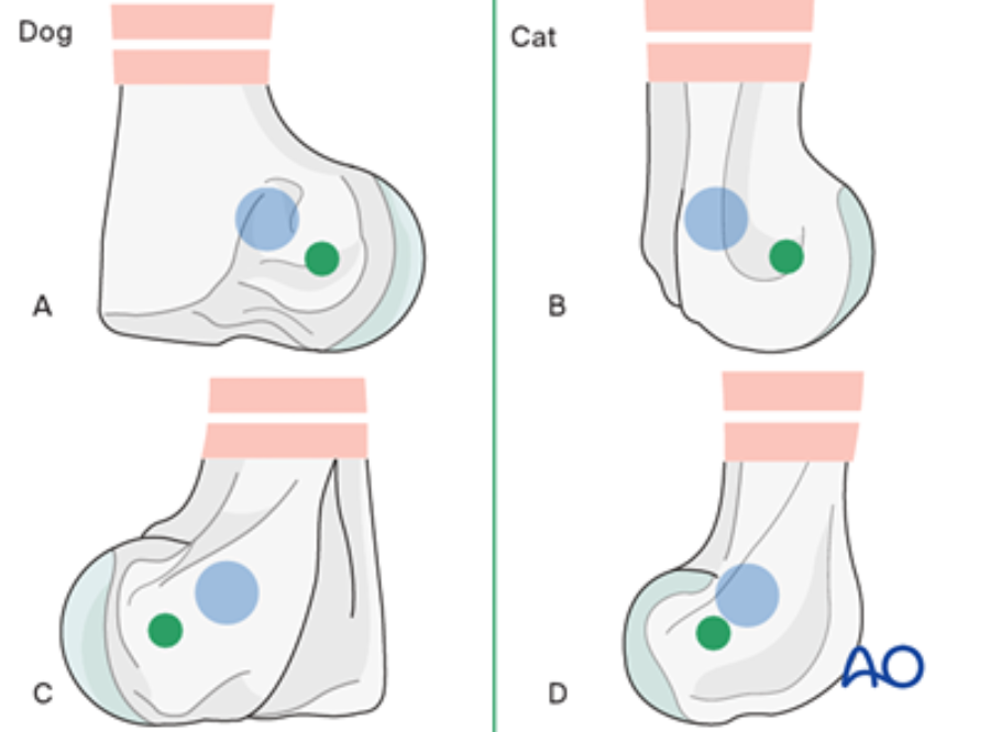 Cats are not small dogs. Differences in osseous anatomy and proportional bone geometry mean that, by treating cat humeral fractures as discrete entities, we can avoid complications such as pin penetration of the supracondylar foramen or joint violation by transcondylar screws.