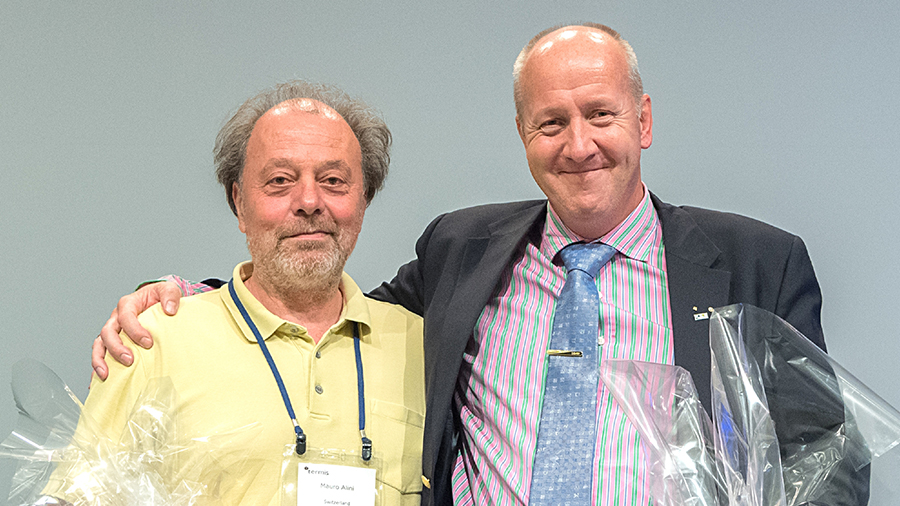 Dr Tiziano Serra (left) received the ISBF Young Investigator Award 2018 at the society annual meeting.