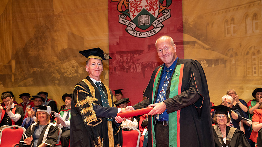 When ARI Director Prof Geoff Richards accepted an honorary fellowship from his alma mater, Aberystwyth University in Wales, on July 17, 2019, he represented the AO's contribution to the university's selection of those best of the best. Those present were recognized for an impressive array of achievements, from a key figure in the global campaign to eradicate polio to a former first minister of Wales. Richards was among nine honorary fellowship recipients who were recognized for their connections to the University of Wales and for outstanding contributions to their chosen fields.