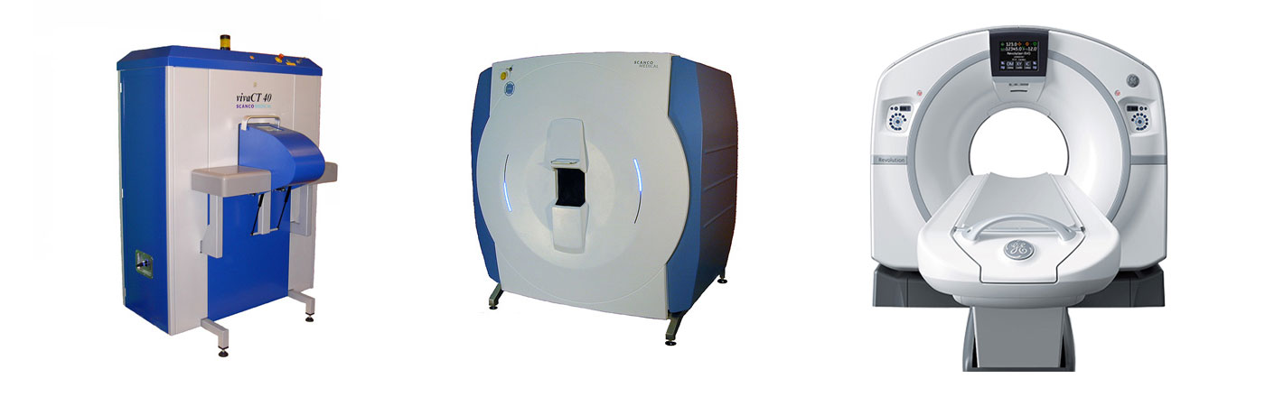 Our comprehensive infrastructure comprises a variety of CT scanners with a wide range of resolutions and scanned volumes, as well as a diverse software tools for virtual individual and statistical bone modelling. Various self-developed routines extend the spectrum of the in vivo and in vitro CT applications for investigation of different skeletal locations, bone scaffolds, and diverse outcomes of innovative surgical procedures.
