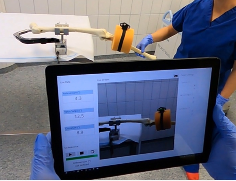 A system prototype was realized, which includes functionalities to control correction osteotomies and reduction of femoral fractures. The system is based on previous tracking technology invented in ARI and requires only a mobile device with optical camera (e.g., smartphone) and 2 plastic reference markers. By placing the reference markers at specific anatomical regions, spatial relation of the latter can be determined and tracked. A software processes the video stream from the in-build camera, continuously calculating the position of the references and thus the anatomical relations. The actual values are displayed in real-time on the screen, so that the surgeon can easily monitor and act accordingly. The prototype has demonstrated its functionality in bench-mark tests showing that the system can deliver relevant information for intraoperative benefits to facilitate and improve surgical interventions.