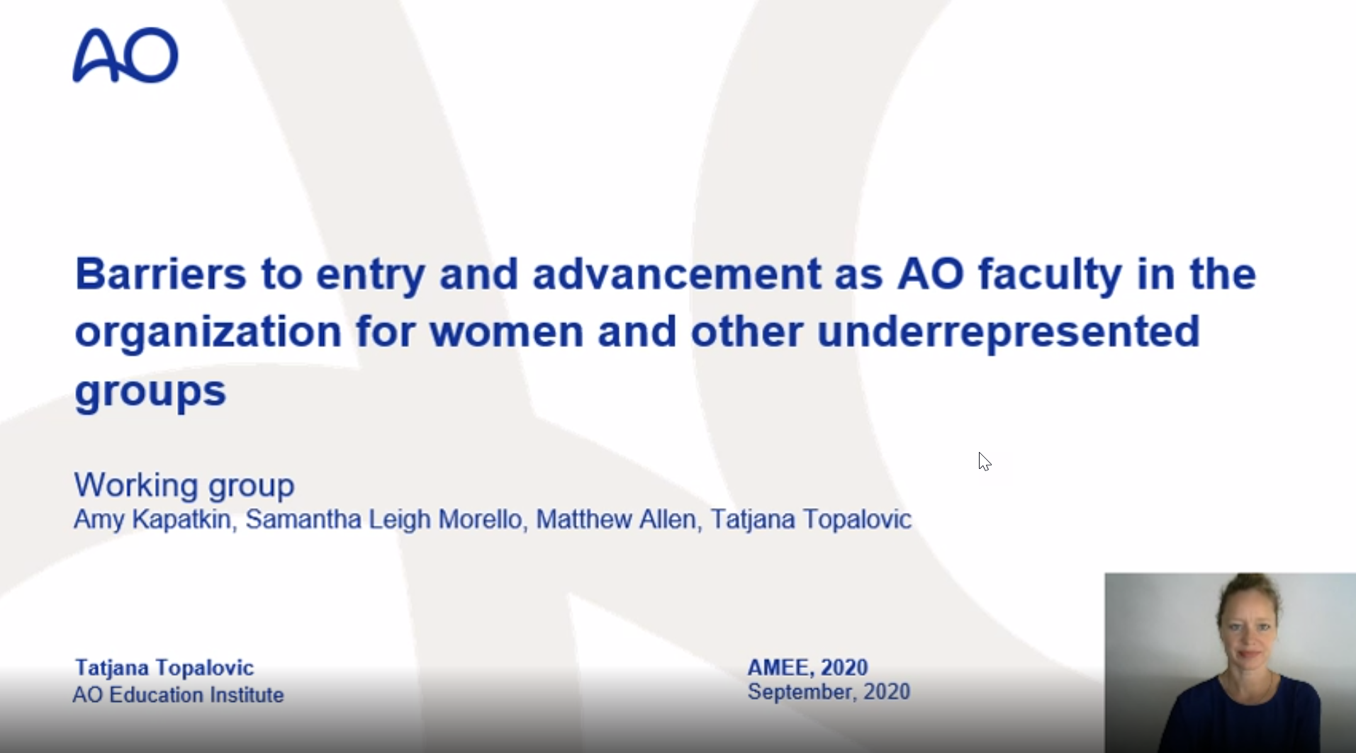 - Barriers to entry as AO faculty and for advancement in the organization for women and other underrepresented groups (Tatjana Topalovic, Samantha L. Morello, Amy Kapatkin, Matthew J Allen, Clare Allen)