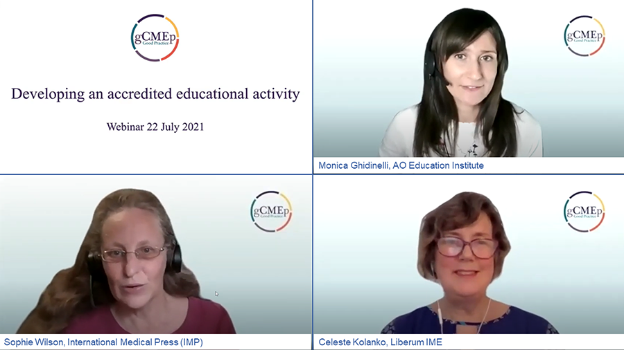In the webinar, AO Project Manager CME Accreditation & Educational Research, Monica Ghidinelli, discussed how to design an accredited continuing medical education (CME) activity with International Medical Press Director of CME Services, Sophie Wilson, and Liberum IME Managing Director, Celeste Kolanko.