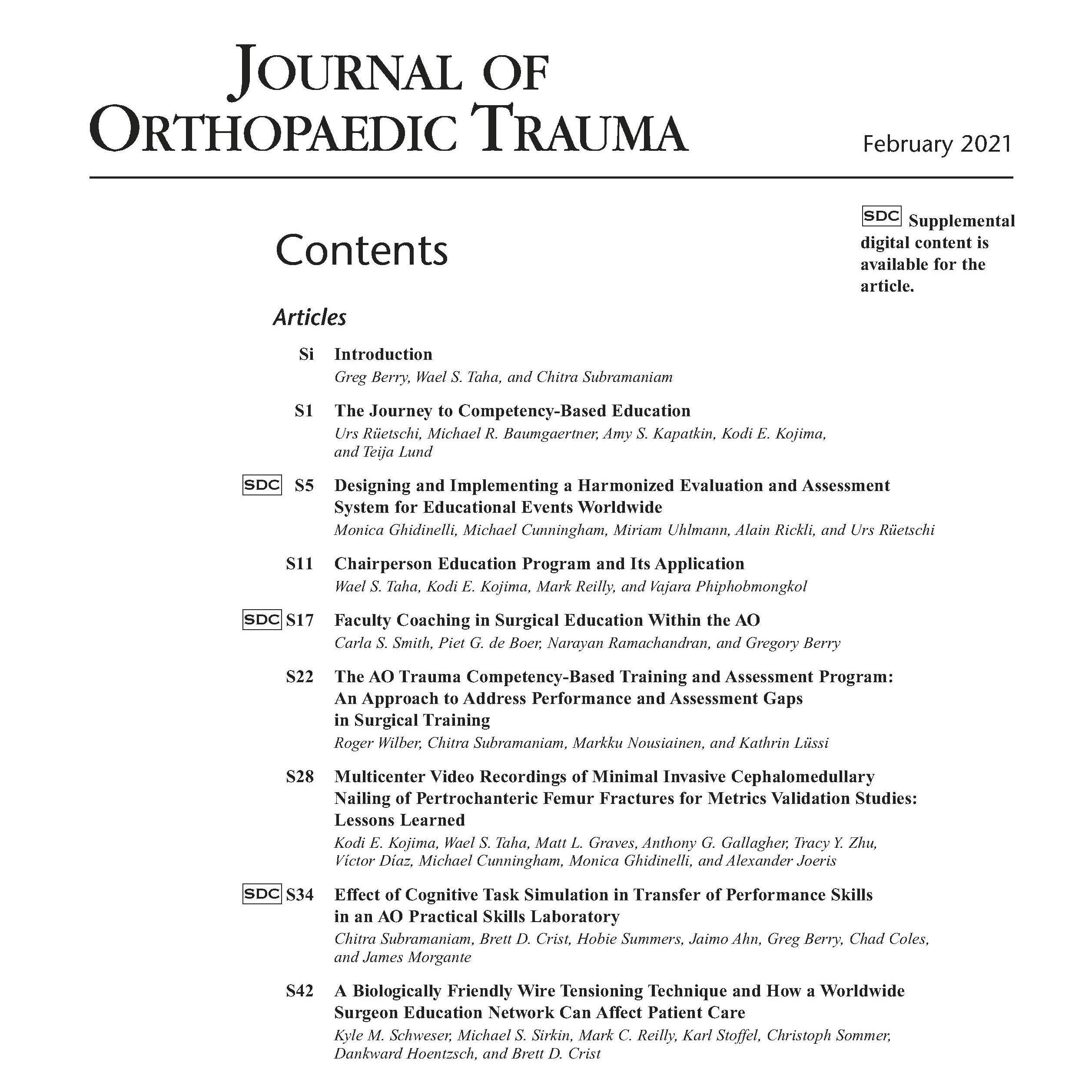 This JOT supplement is the result of the joint efforts of AO faculty and employees guided by three guest editors: Gregory Berry, MD, member curriculum taskforce CTAP; Wael S. Taha, MD, chairperson AO Trauma Education Commission; and Chitra Subramaniam, PhD, chief learning officer, AO North America.