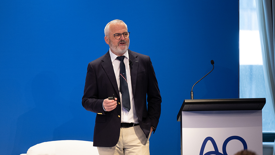 The morning sessions on day two were dedicated to in-depth reports from the executive directors of the AO Research Institute (Geoff Richards), AO Education Institute (Urs Rüetschi, outgoing; and Tobias Hüttl, incoming) and AO Innovation Translation Center (Claas Albers) on the myriad projects, programs, and initiatives their teams are working on across the AO. This was followed by a partnership update from Aldo Denti, Company Group Chairman DePuy Synthes, and a presentation from the AO Research Institute program leader on regenerative orthopedics (Martin Stoddart) on regulating stem-cell fate by mechanics. The morning concluded with an engaging breakout session on the topic of "From good to great—a life as a surgeon," run by the chairs of the International Boards of the clinical specialties.