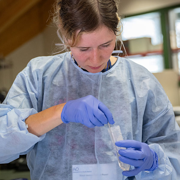 Hands-on training is an essential part in the education of students pursuing Health Sciences and Biomedical Engineering tracks. On April 5 and 6, 2024, around 40 students from ETH Zurich (ETHZ) and 15 students from the University of Applied Sciences Winterthur (ZHAW) joined a practical course in “Skeletal Repair” at the AO Research Institute Davos (ARI).
